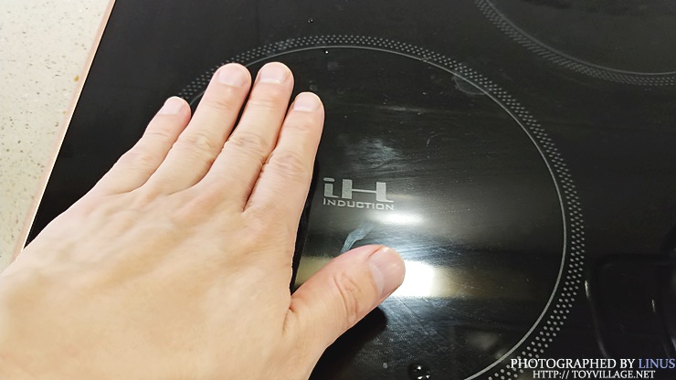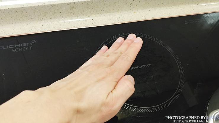 사용 직후 잔열을 체크해보면, 하이라이트는 불을 끄고도 잔열이 제법 오래간다. 고양이나 아기 조심! 손을 대면 뜨거우니 살짝 띄워서 잔열 체크중.