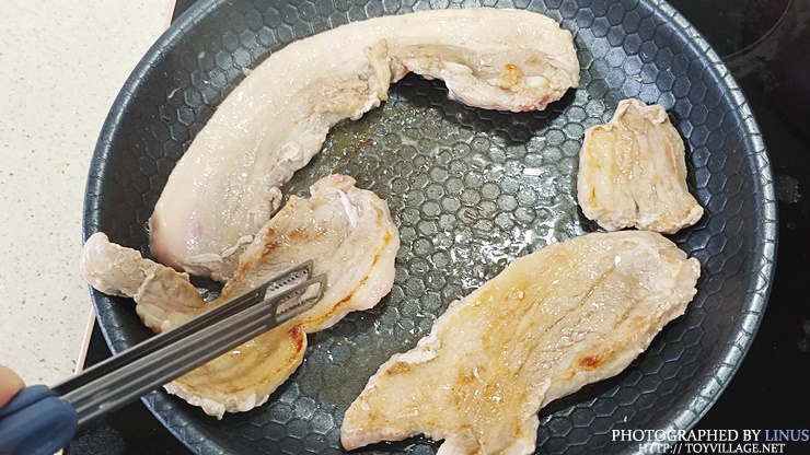 어쨋든 인덕션에 삼겹살을 구워보자. 열이 고르게 전달되다보니 고기가 타지않고 좀 더 구석구석 잘 익는 느낌이다.