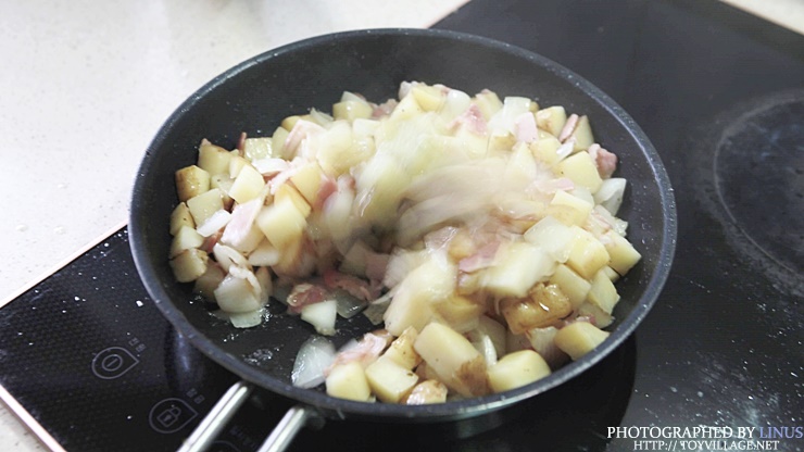 이번엔 베이컨 감자 요리에 도전! 예전 가스레인지를 쓸때 보다 확실히 굵게 썰어넣은 감자도 겉이 타지 않고 속까지 잘익는 느낌이다.