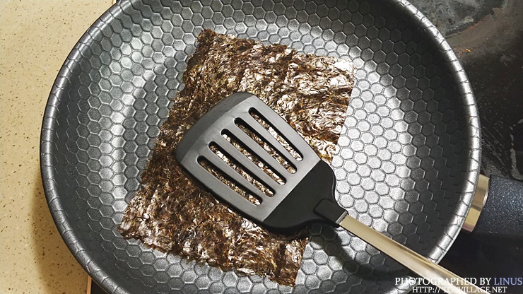 인덕션 방식의 단점이 바로 직화가 안된다는건데...ㅠㅠ 그래서 좋아하던 고구마 직화는 해먹을수가 없게되었다. 고구마는 직화냄비도 버리고 에어프라이기로 갈아탔다. (뭐 에어프라이기도 맛은 비슷하긴하다.ㅋ) 김은 예전처럼 직화로 굽지않고 이렇게 후라이팬에 구워야한다. 위의 벌집 모양의 후라이팬은 알텐바흐 3종 스탠 후라이팬이라는데 같은 가격이라면 체감상 테팔 티타늄 등급이나 해피콜 다이아몬드 등급이 더 나은것 같긴하다.