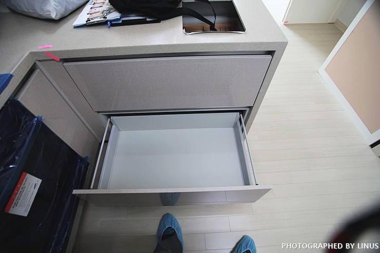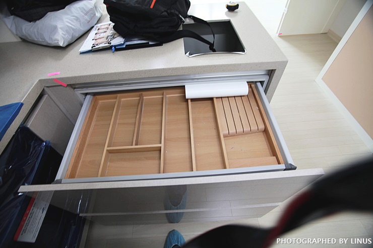 빌트인 김치 냉장고도 확인해보고... LG꺼군. 여튼 김치통까지 잘 들어있다.
