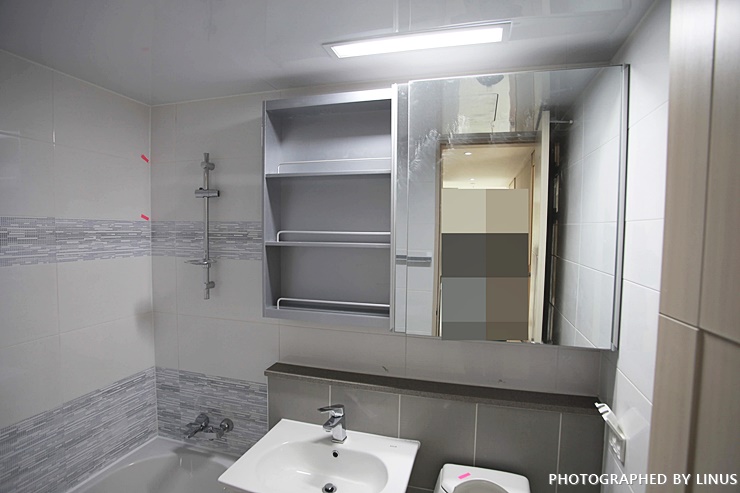 공용 화장실 체크. 욕조 쪽 타일에 백시멘트가 안발려 속이 들여다 보이는 곳 발견. 변기 뒤쪽 백시멘트 처리가 안된것 매의 눈으로 발견. 화장실을 체크할때 꼭 해봐야하는게 바로 좌변기 물을 내려보는것이다. 물이 잘 안내려가거나, 막혀있거나 하는 문제가 종종 있다고한는데... 필자의 경우는 특이하게도 물을 내리니 좌변기 뒤쪽 파이프에서 물이 콸콸 새어나온다.-_-; 파이프 연결 불량인듯. 체크!