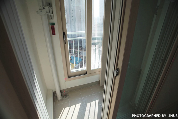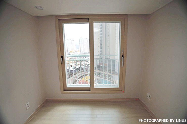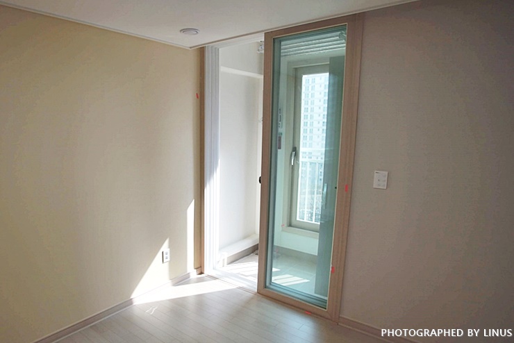발코니 문을 닫고 잠금장치를 걸어보려했으나... 안잠가진다.-_-; 자세히 보니 위아래 유격이 심해서 문틀 전체가 비뚜름하다. 이런 경우 문을 잠가도 외부 공기가(우풍) 그대로 들어오고 여름에는 냉방 손실, 겨울에는 난방 손실이 발생한다. 예전 전세로 살때도 이 문제로 고생했기에 철저하게 체크. 문을 억지로 닫고 손을 대보니 아니나 다를까 바람이 솔솔 들어온다.-_-;