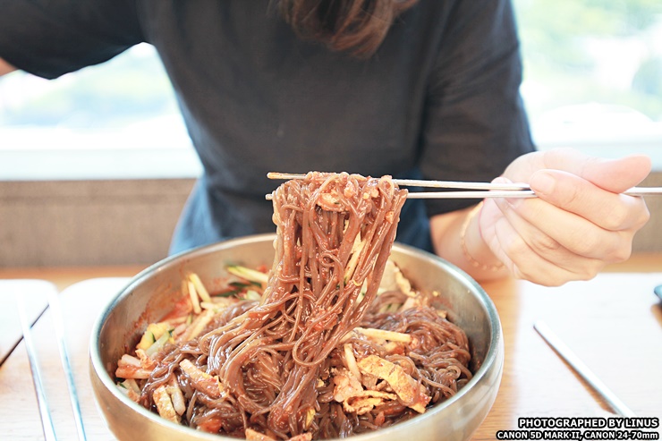 한 젓가락 크게 들어서 후루룩~ 매콤달콤한 양념맛이 일품이다.^^
