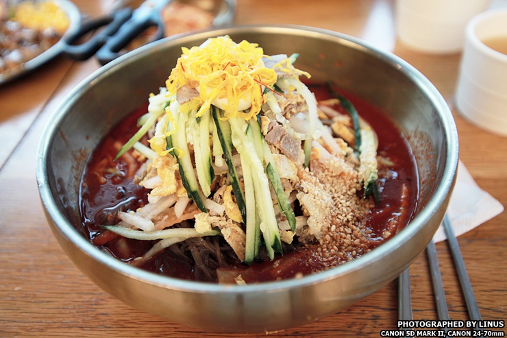 매운걸 잘 못먹는 필자로에게도 그리 맵진 않았지만... 역시 비빔냉면엔 뜨끈~한 육수가 제격!