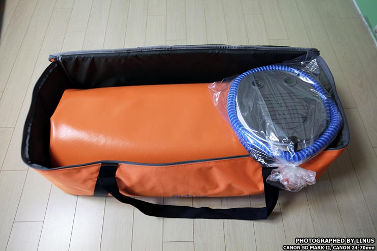 구성품은 수납가방과 에어매트, 발펌프...