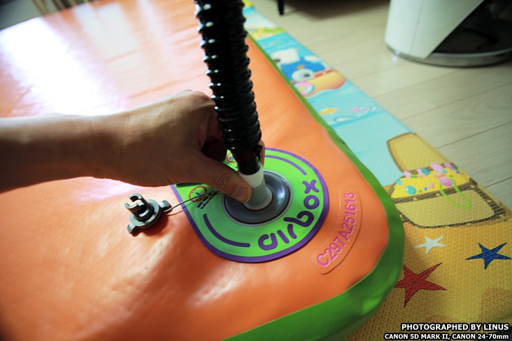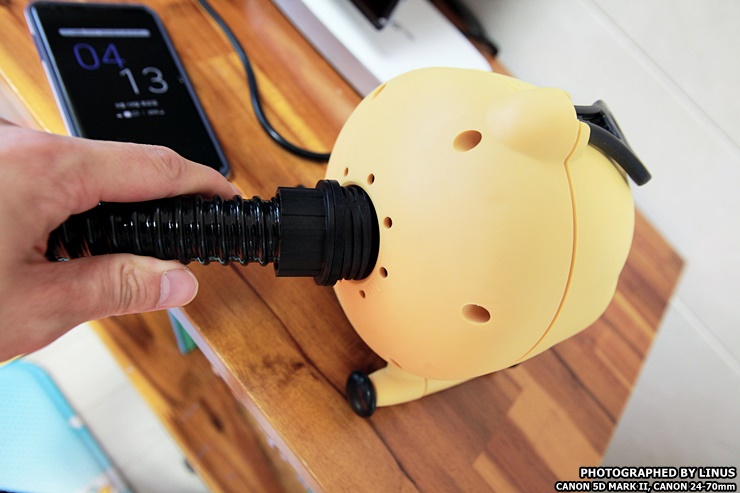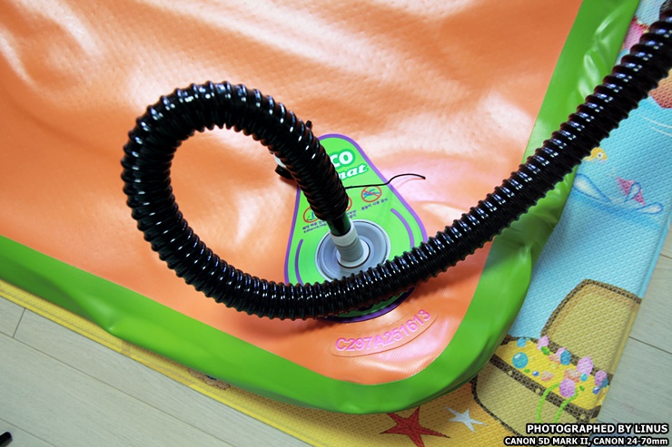 사용법은 간단하다. 바람을 주입할때는 호스 끝부분을 후면부(스위치가 있는쪽)에 끼워주면 된다.