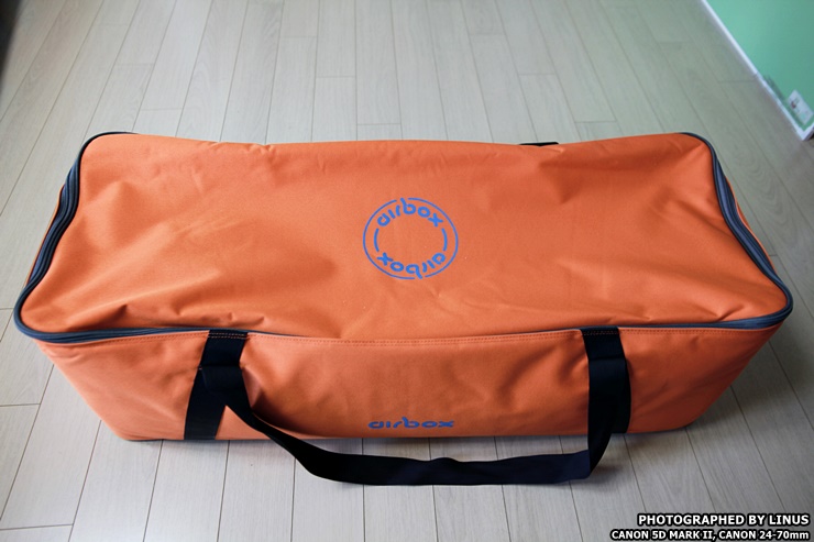 접혀있는 에어박스의 모습. 필자가 구입한 에어박스는 필자의 텐트인 스노우라인의 미라클 패밀리의 이너텐트 사이즈에 맞춰서 높이 10cm에 가로 260, 세로 200 인데 무게가 무려 15~16kg에 달한다. 실수로 먼곳에 있는 편의점에 스마트픽업 신청을 했다가 손에 박스를 들고 오는데 무거워서 별이 오락가락 하더란...;