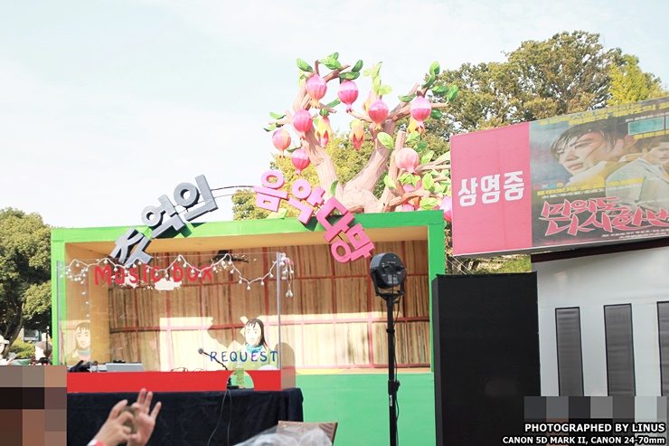바로 옆에 있는 추억의 음악다방. DJ가 앉아 있는데 자세히 보면 유등으로 만든 DJ다.ㅋㅋㅋ; 하루종일 추억의 음악이 틀어져나온다. 앞에는 어디서 공수해왔는지 다방 의자들을 충분히 갖추고 있어 방문객들이 앉아서 커피도 마시고 과자도 먹고 자유롭게 쉬고 있다.