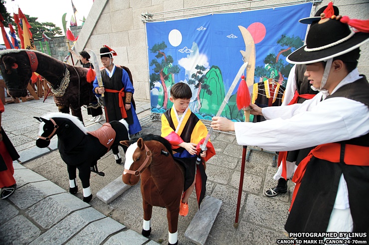 모형 말타기 체험. 이건 특별히 군관복과 칼도 빌려준다. 검과 청룡언월도(?) 둘 중 하나를 선택할수있다.ㅎ 사진에는 없지만 한복체험도 진행되고있다.
