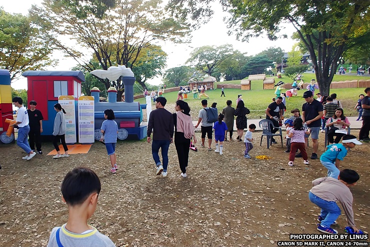진주성 왼쪽편으로는 민속체험이라고 하여 아이들이 제기차기를 하고있다. 제기차기 뿐만아니라 추억의 만화방, 추억의 뽑기, 불량식품(?) 체험 같이 아이들이 좋아할만한 체험부스도 함께 진행중이다.ㅎ