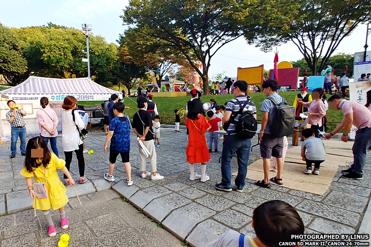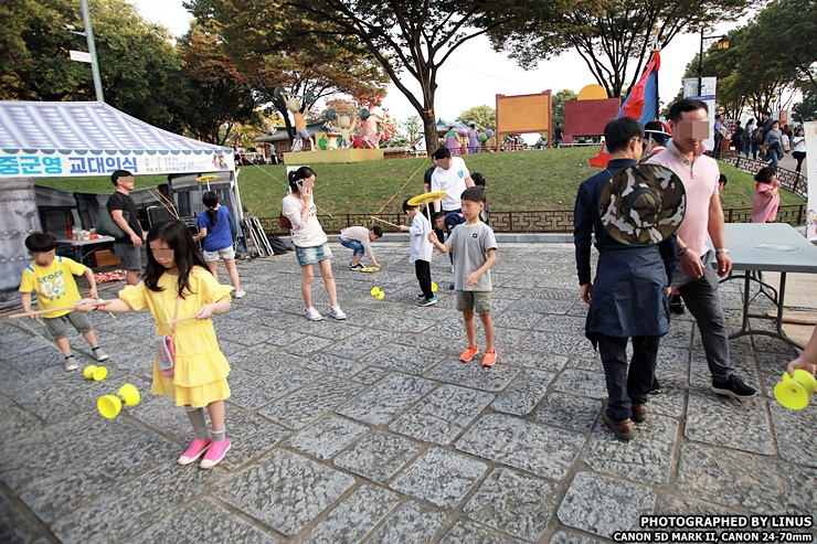 진주성 왼쪽편으로는 민속체험이라고 하여 아이들이 제기차기를 하고있다. 제기차기 뿐만아니라 추억의 만화방, 추억의 뽑기, 불량식품(?) 체험 같이 아이들이 좋아할만한 체험부스도 함께 진행중이다.ㅎ