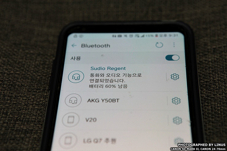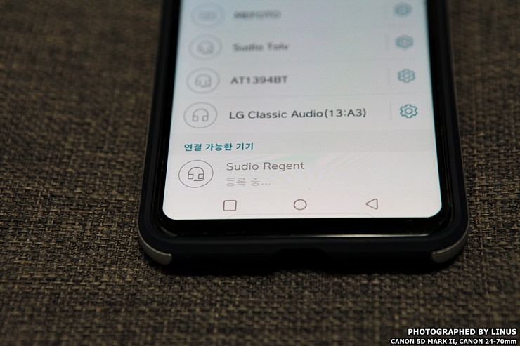 그리고 필자의 폰인 LG V30에서 연결 가능한 기기로 SUDIO REGENT 가 검색되어 나타난다.