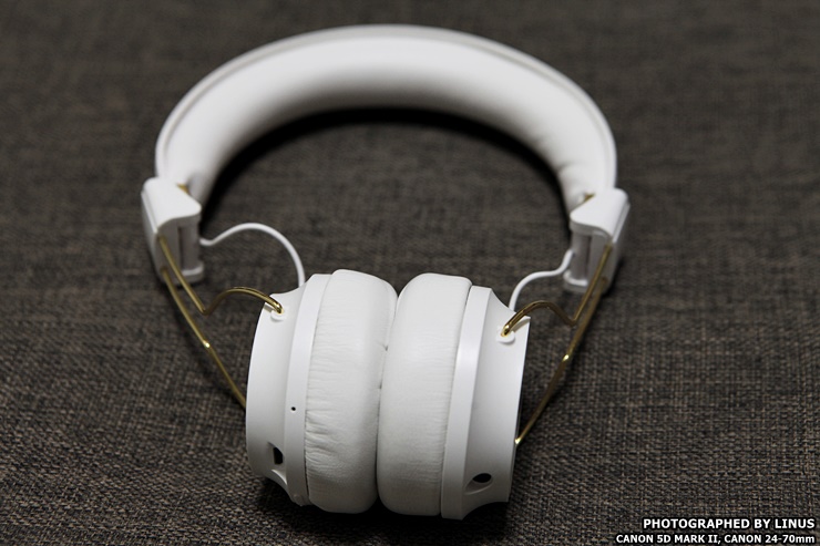 안으로 접혀있는 수디오 리젠트2의 모습. 옆의 검은색 선이 USB 충전선이며, 그 옆의 하얀선이 헤드폰의 배터리가 다 달았을때 연결해서 사용할수 있는 유선 AUX 선이다. 수디오 리젠트2의 배터리 사용시간은 완충시 무려 24시간이나 되지만 그래도 혹시 충전을 깜빡했을 경우 유용하게 쓰일 수 있을듯하다.