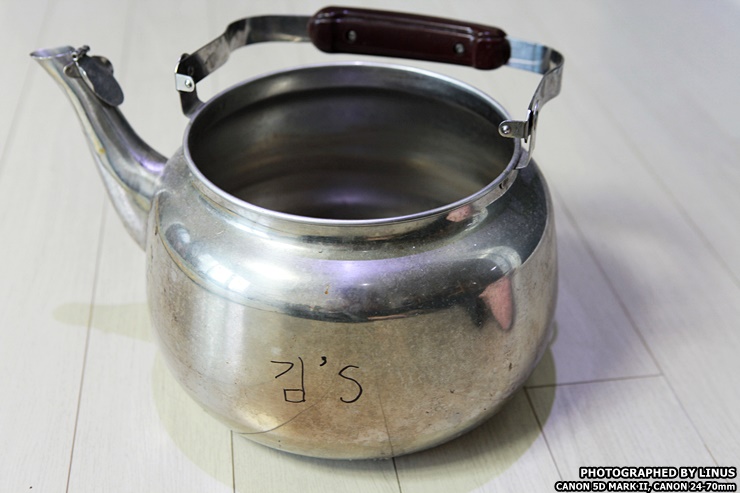 이번엔 창고에 굴러다니던 오래된 주전자. 김's라는 의미를 알수없는(?) 낙서가 씌여져있다.