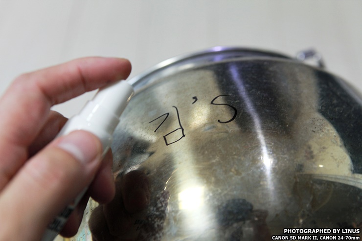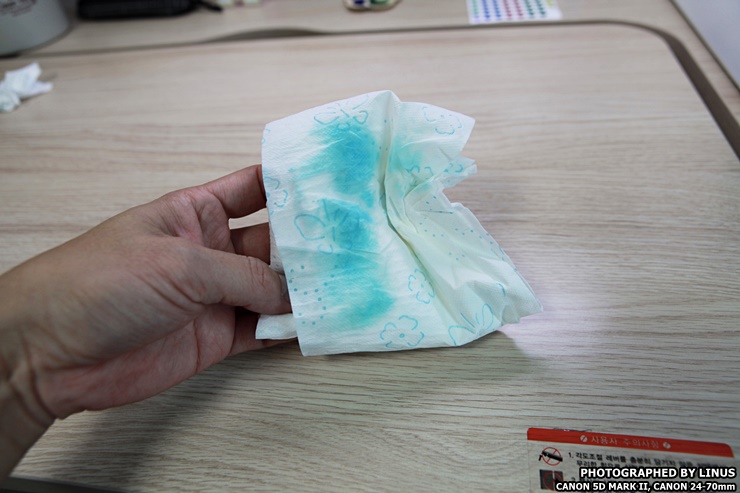 지우는 과정을 동영상으로 보도록 하자. 먼저 유성매직 클리너를 지워야할 부위에 뿌리면 뭔가 색이 옇어지기 시작한다. 이때 휴지로 슥삭슥삭 문질러 주면, 끝!