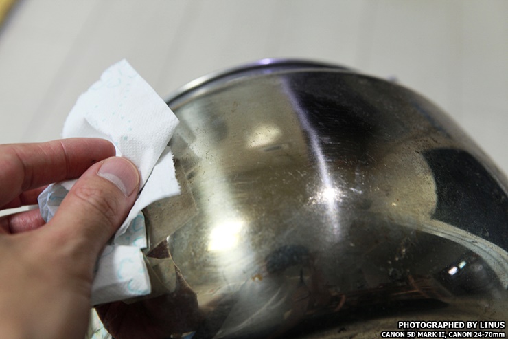휴지로 슥삭 슥삭 힘주어 닦아내면 말끔히 진다. 참고로 표면이 평평한 곳은 가볍게 문지르기만해도 쉽게 지워지고 이 부분처럼 무늬결이 있어 표면이 울퉁불퉁한 부분은 약간 힘을 더 줘서 문질러주면 좋다.