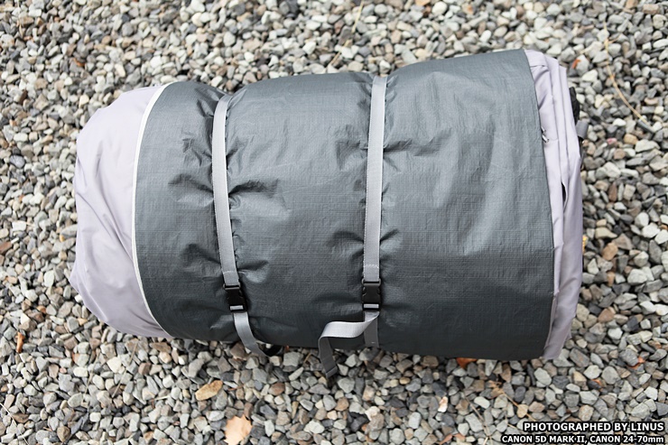 가방을 열면... 이렇게 텐트와 그라운드 시트, 이너 텐트, 루프가 혼연일체(?)가 되어 묶여져있다.