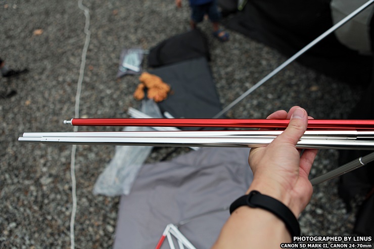 이게 바로 알루미늄으로 만들어진 폴대. 이걸 텐트 겉면으로 슉슉 넣어서 뼈대를 세워준다.