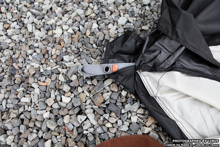 파쇄석위에 그라운드 시트를 먼저 올린다. 저 그라운드 시트는 방수포 소재로 되어있어 바닥으로부터 올라오는 습기와 비가 내릴 경우 이너텐트쪽으로 빗물이 올라오는걸 막아준다.