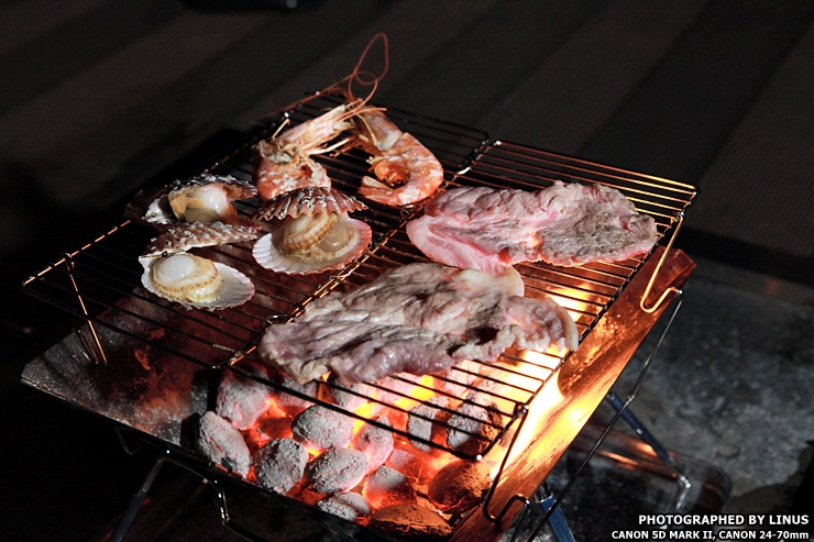 가리비도 굽고, 새우도 굽고, 목살도 굽고... 집에서 먹던 고기는 고기도 아니었으며, 집에서 삶아먹던 해산물은 해산물이 아니었다. 죽은(?) 고기도 살린다는 숯불 바비큐!