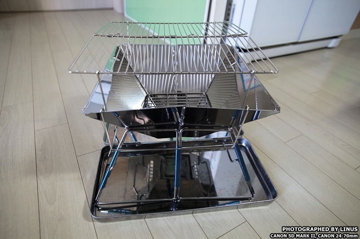 그리고 맨 위에 2단 그릴을 올려준다. 세척이 귀찮을것같아서 1회용 태망을 써서 고기를 굽고 버릴까 했는데 벌써 3번이나 사용했는데도 저 스테인레스 그릴은 멀쩡하다!
