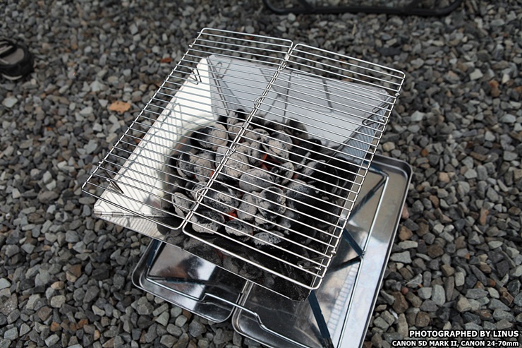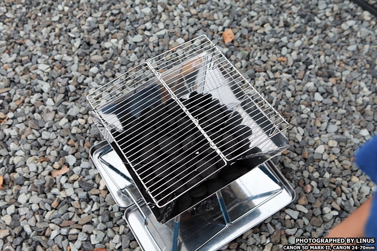 이렇게 숯을 안에 넣어주고 그릴을 올리면 된다. 하지만 그릴을 올리기 전에 숯에 불을 붙여야한다.