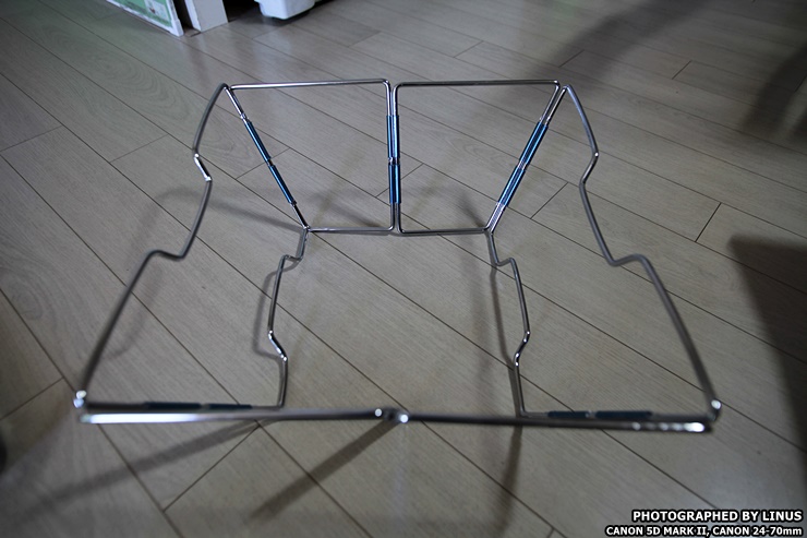 겉 케이스(보관함)를 바닥에 깔면 재받이가 된다. 그 위에 화로 받침용 프레임을 세워주고...