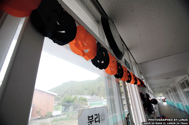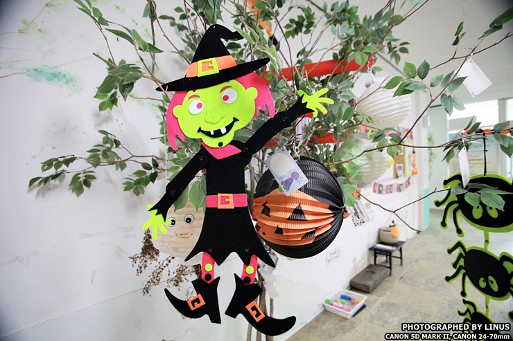 도토리 캠핑장의 상징(?)인 학교 안으로 들어가니 갖가지 할로윈 데이 소품으로 장식되어있다. 우리를 맞이하는 마녀의 모습.ㅎ 여기서 잠깐 할로윈의 유래를 설명하자면... 할로윈은 고대 켈트족 축제에서 유래되었다. 현재 모습을 갖춘건 1930년 무렵이며 죽음의 신에게 제의를 올림으로써 죽은 이들의 혼을 달래고 악령을 쫒았다. 이때 악령들이 해를 끼칠까봐 사람들이 자신을 같은 악령으로 착각하도록 기괴하게 꾸미는 풍습이 있었는데 이게 할로윈 분장 문화의 원형이라고 한다. 할로윈데이의 날짜는 보통 10월 마지막날이라고...