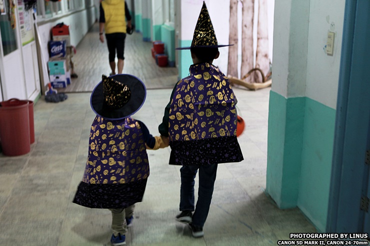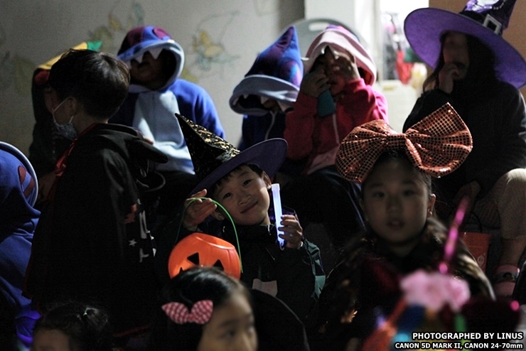 어느덧 영화가 끝나고... 다양한 귀신과 유령들이 한자리에 모였다! 마법사, 마녀, 악마, 백설공주, 유령신부, 아기상어, 좀비 흉터 스티커까지... 각자 취향(?)껏 변장하고 나왔다. 아이들이 이렇게 많았다니! 사탕과 웰치스 젤리를 넉넉하게 준비했지만 어쩌면 모자랄지도...ㄷㄷㄷ;