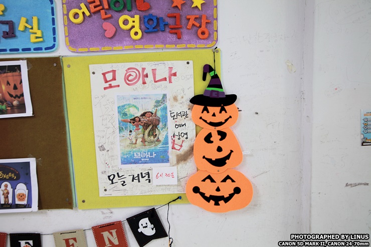 도토리 캠핑장에선 저녁 7시30분 마다 영화를 상영하는데 오늘은 할로윈데이 행사 때문에 6시30분으로 한시간 당겨졌다. 오늘의 영화는 모아나.