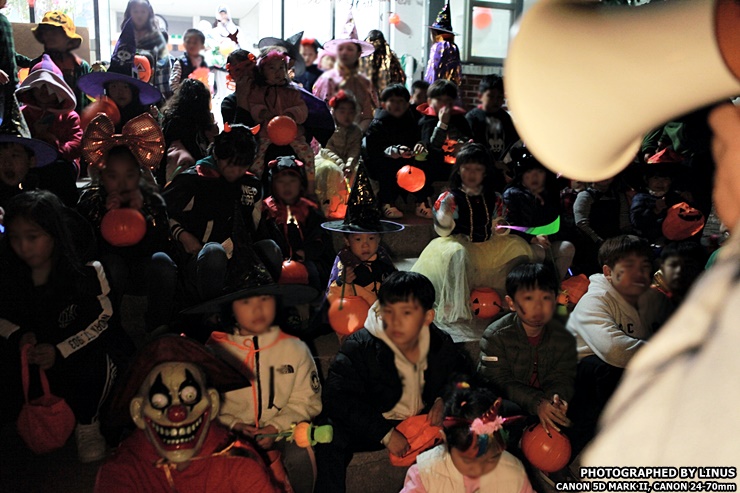 할로윈데이. 사실 외국영화에서보면 아이들이 갖가지 분장을하고 호박바구니를 들고 집집마다 돌아다니며 사탕을 받으러 다니는데... 주택이 아닌 아파트가 대부분인 요즘에는 계단이나 엘리베이터를 타고 사탕을 얻으러 다녀야 한다는 불편함이 있다. 하지만 이웃들끼리 텐트 외부가 개방되어있는 형태인 캠핑장에서는 이웃의 텐트에 방문해 인사를 하고 사탕을 받고 감사 인사를 하고... 그런 불편함이 전혀 없고 오히려 캠핑장내 이웃들끼리 가볍게 인사하고 즐겁게 웃을수 있는게 큰 장점으로 작용하고 있다. 어쩌면 캠핑장이야말로 할로윈데이 행사에 가장 잘맞는 장소일지도? ^^;