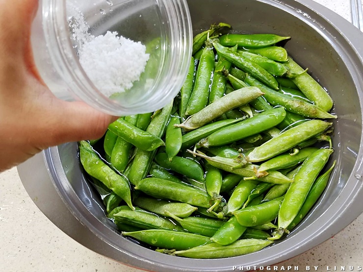 먼저 완두콩을 흐르는 물에 깨끗하게 잘 씻어주자.