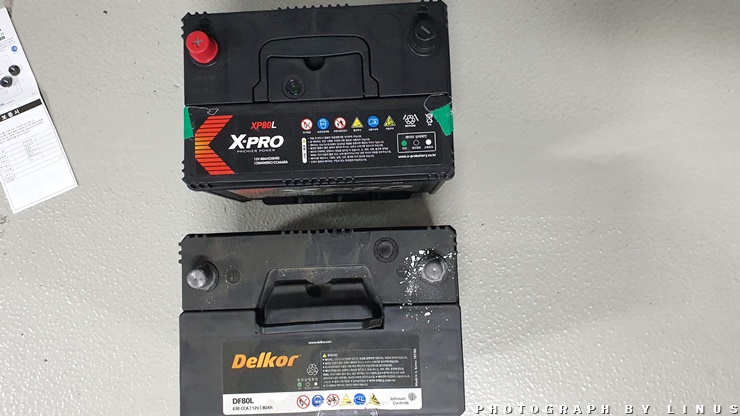 여튼 자동차 배터리 교체 비용을 알아보니, 인근 카센터에서 거의 10만원 돈. 인터넷으로 동일 용량의 배터리 가격을 알아보니 5만원 이하. 검색을 해보니 인기 배터리 순위에는 델코, 로케트, 아트라스, 보쉬, 엑스프로(X-PRO), 바르타 등등 다양한 배터리 메이커와 종류가 있고 요즘 인기라는 리튬인산철 추가 배터리도 있었으나. 역시 가성비가 좋은 일반 배터리를 선택하기로 하고 최근에 뜨고(?)있는 엑스프로(X-PRO) XP80L 제품으로 선택했다. 가격은 이것저것 영혼까지 할인을 끌어모아 4만원 후반대(기존 사용하던 배터리 반납조건)...^^; 확실히 카센터(10만원)보다 비용이 상대적으로 저렴하다.