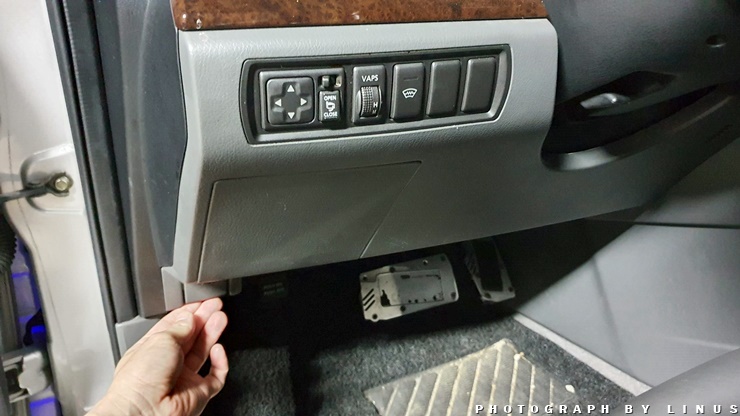 일단 시동이 꺼진 상태에서 차 아래쪽에 있는 보닛(본넷)을 여는 버튼을 누른다.