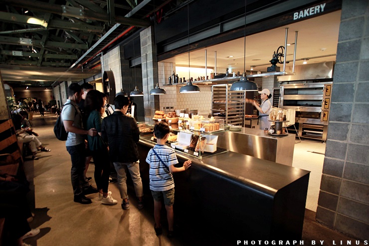 테라로사 수영점 커피숍 전경. 왼쪽은 바리스타 분들이 커피를 내리는 곳이고, 오른쪽은 베이커리(제과점)이다.