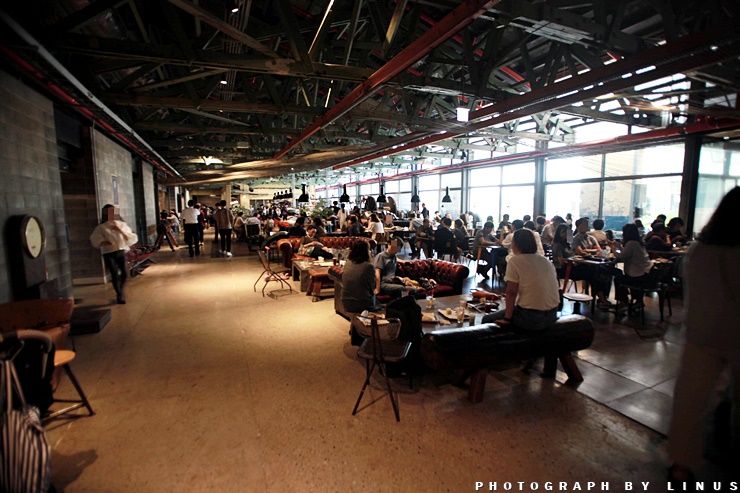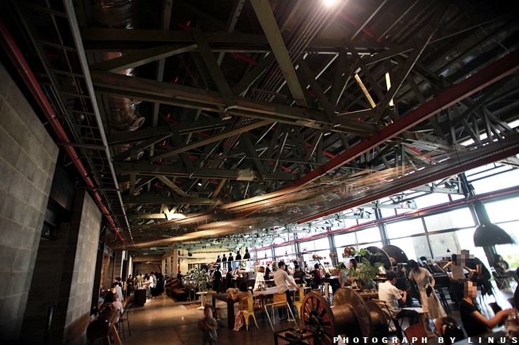 천장도 상당히 인상적인데... 제조업 공장 천장처럼 철근구조물이 천장을 떠받들고 있다.