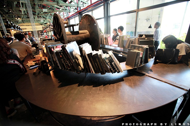 뭔가 되게 어렵고, 되게 두꺼운 영어 책들이 꼽혀져있다. 인테리어로는 좋고, 읽기에는 살짝 부담스럽다.ㅎㅎ; 가운데 있는 커다란 철패(?)는 와이어를 감아두었던 철패인듯. 이곳이 나름 테라로사 수영점 내 기념촬영 핫플인듯하다.