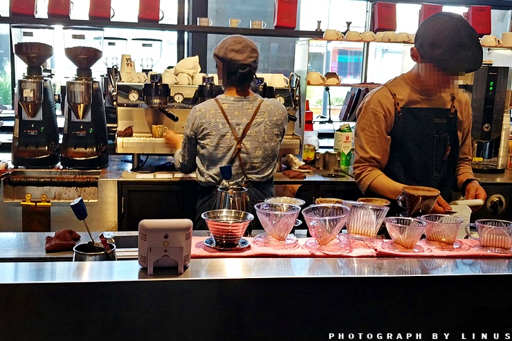 열심히 커피를 내리고 계신 바리스타분들... 코로나 시국이다보니 마스크를 착용하고 계시다.