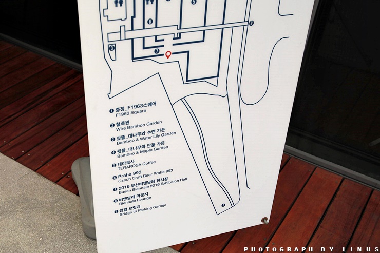 테라로사 안내도. 철죽원, 대나무와 수련 가든, 대나무와 단풍 가든, 테라로사 프라하 993, 비엔날레 라운지 등이 있다고...