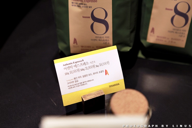 나가는 길에 보이는 커피가게. 이곳에선 원두와 드립백, 보틀, 텀블러 등을 판매한다. 사실 테라로사 홈페이지를 통해 구입도 가능하나 배송료가 붙어서 커피숍 10% 할인 신용카드가 있으신 분들은 현장 구매하시는 게 더 저렴할 듯하다.