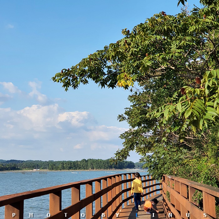 비토섬은 입구에 있는 주차장에 주차를 하고 골프카트 같이 생긴 전기차에 캠핑장비를 옮겨 싣고 캠핑장 안으로 들어간다. 결국 짐을 두번 나르는 셈이라 힘들긴한데... 그래도 비토섬 내의 매연 방지및 환경을 위한 것이라하니 감수해야지...^^; 우리 사이트인 용궁 14번과 용궁 12번에 짐을 풀고 해안산책로를 따라 갯벌쪽으로 내려갔다.