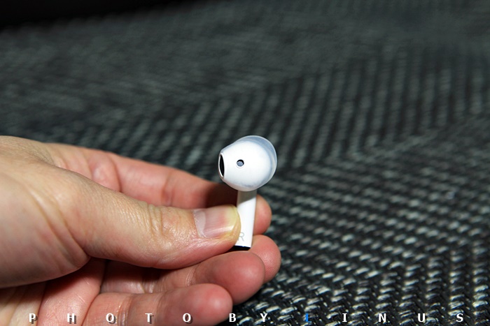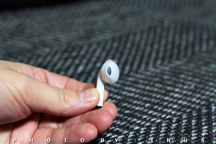 귀에 꼽았을때 밖으로 나오는 부분. 저 위에 있는 검은색 부분이 처음엔 버튼인줄 알고 눌렀었는데 알고보니 터치식...^^; 저 부분을 건드림(터치)으로써 다음곡, 이전곡, 재생, 정지, 전화받기등 다양한 기능을 조작할 수 있다.
