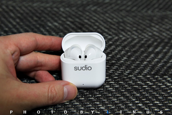 수디오 니오의 케이스겸 충전도크. 들어보면 엣트에 비해 상당히 가벼워졌다. 체감상 거의 절반 정도의 무게? IPX4의 방수력을 가지고 있어 야외 러닝시 땀이나 가벼운 비 정도는 무리없이 커버될듯하다.