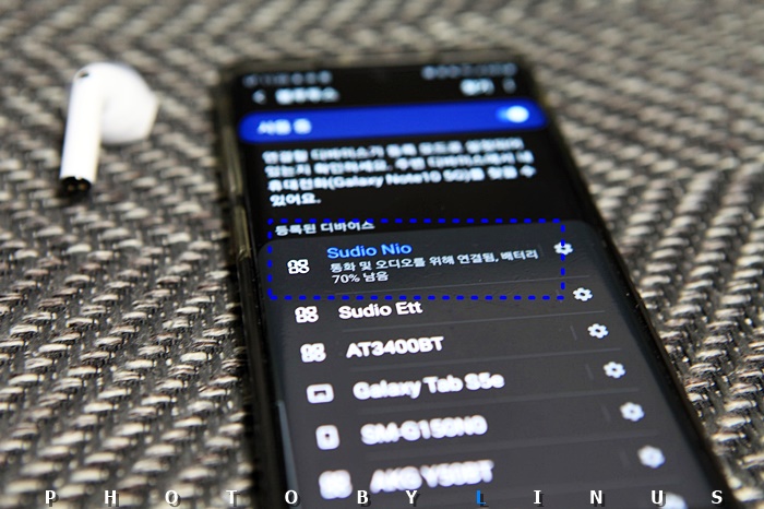 블루투스 연결 요청. 'SUDIO NIO 디바이스를 연결할까요?'라고 물어온다. 확인을 누르면...