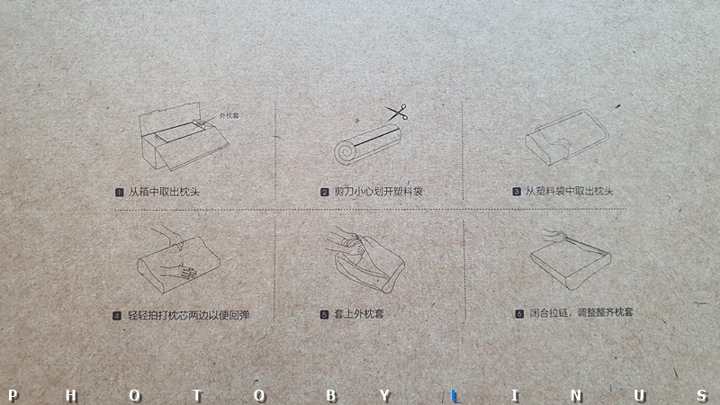 진공포장 비닐을 뜯으니 곧바로 베개가 원래의 형태를 찾아간다.