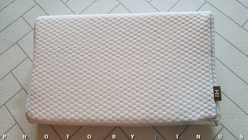 베개의 뒷모습. 옆쪽에 H8이란 테그가 붙어있다. H8은 8시간동안 숙면을 이룰 수 있다는 말이다.ㅎ