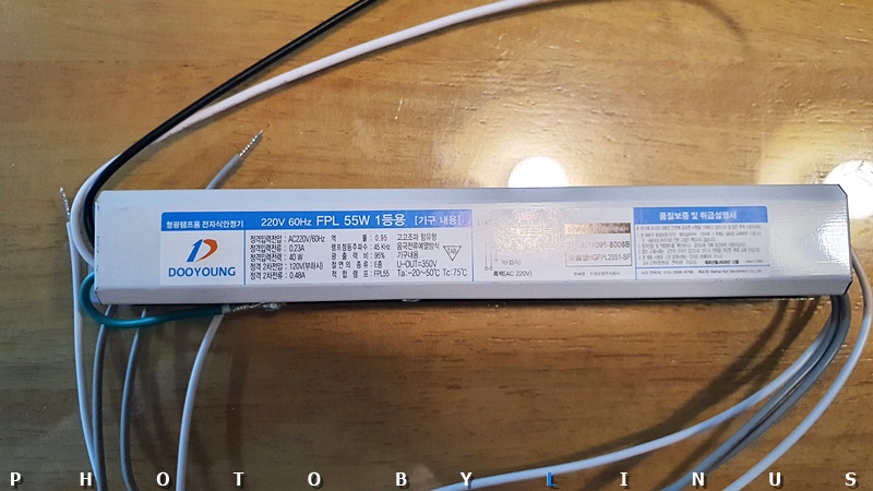 먼저 안정기가 다 되었으니, 안정기를 구입해준다. 근처 철물점에 가도 되고, 필자의 경우엔 인터넷으로 주문했다. 기존에 달려있던 안정기를 보고, 사진에서처럼 FPL 55W 1등용 이라고 적혀있으면 그대로 검색해서 구입하면 된다. 참고로 소켓도 함께 구입하면 더 좋다. 어쨌거나 주문한지 하루만에 도착한 필자의 새 안정기.ㅎ