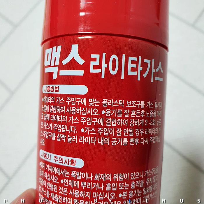 맥스 라이타가스. ...라고 적혀있다. 사용방법과 사용시 주의사항 등이 적혀있다. 역시 폭발이나 화재를 조심하라고 적혀있다.