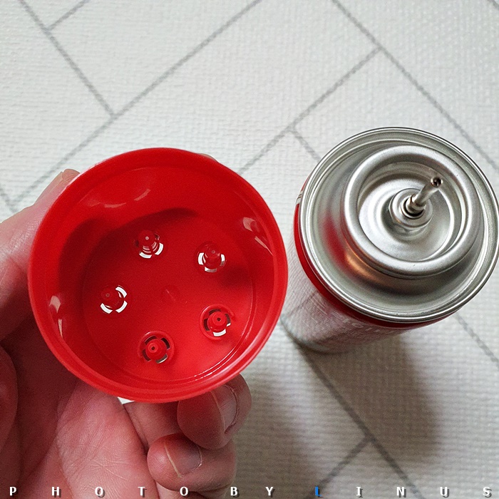 그런데 노즐 크기가 안맞을 경우 주입이 제대로 안된다.ㅋ 그렇다 5번이 아니었던 것. 액화부탄이 약간 새서 손에 묻었는데 엄청 차다. ㄷㄷㄷ; 찝찝한 분들은 장갑을 끼시는 것도 괜찮겠다. 여하튼 끼워두었던 5번 노즐을 빼버리고 그냥 주입구에 대보니... 딱 맞다. 물론 필자의 라이터는 저 기본 분사구와 맞는 타입이라 별도의 노즐이 필요없었지만 사이즈가 안맞는 분들은 1번에서 5번까지 중 맞는 노즐을 찾아서 끼워주시면 된다. 여튼 다시 츄욱~ 츄욱~ 츄욱~ 3번 주입을 했다.